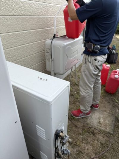エコキュートをお使いの方は灯油を持っていない方が多いのでタンクに当店持参の灯油を給油します。