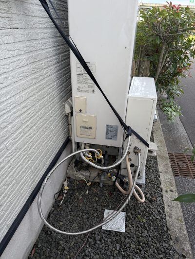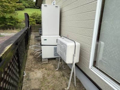 エコキュートが故障した方々に入荷・取付けまでの間に不自由がないように石油給湯器を仮設させて頂きました。
