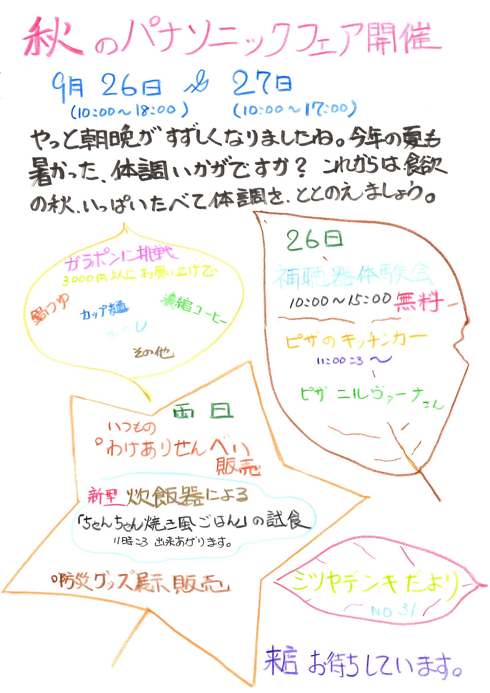 さて、9月26日、27日に、秋のパナソニックフェアを開催します!