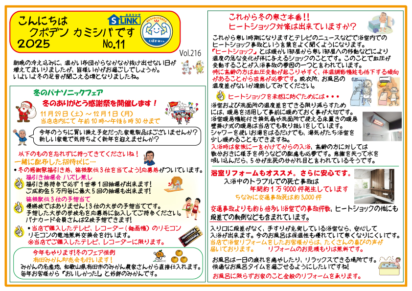 お店発行の新聞「こんにちはクボデンカミシバです 2025年№11」
