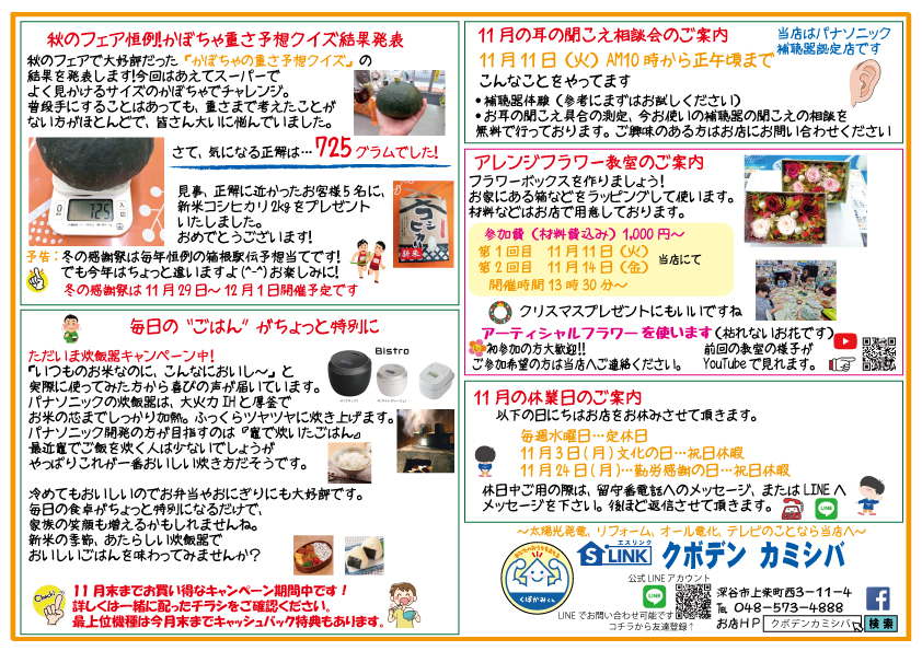 11月は月末にpanasonicフェアの開催を控えております・
