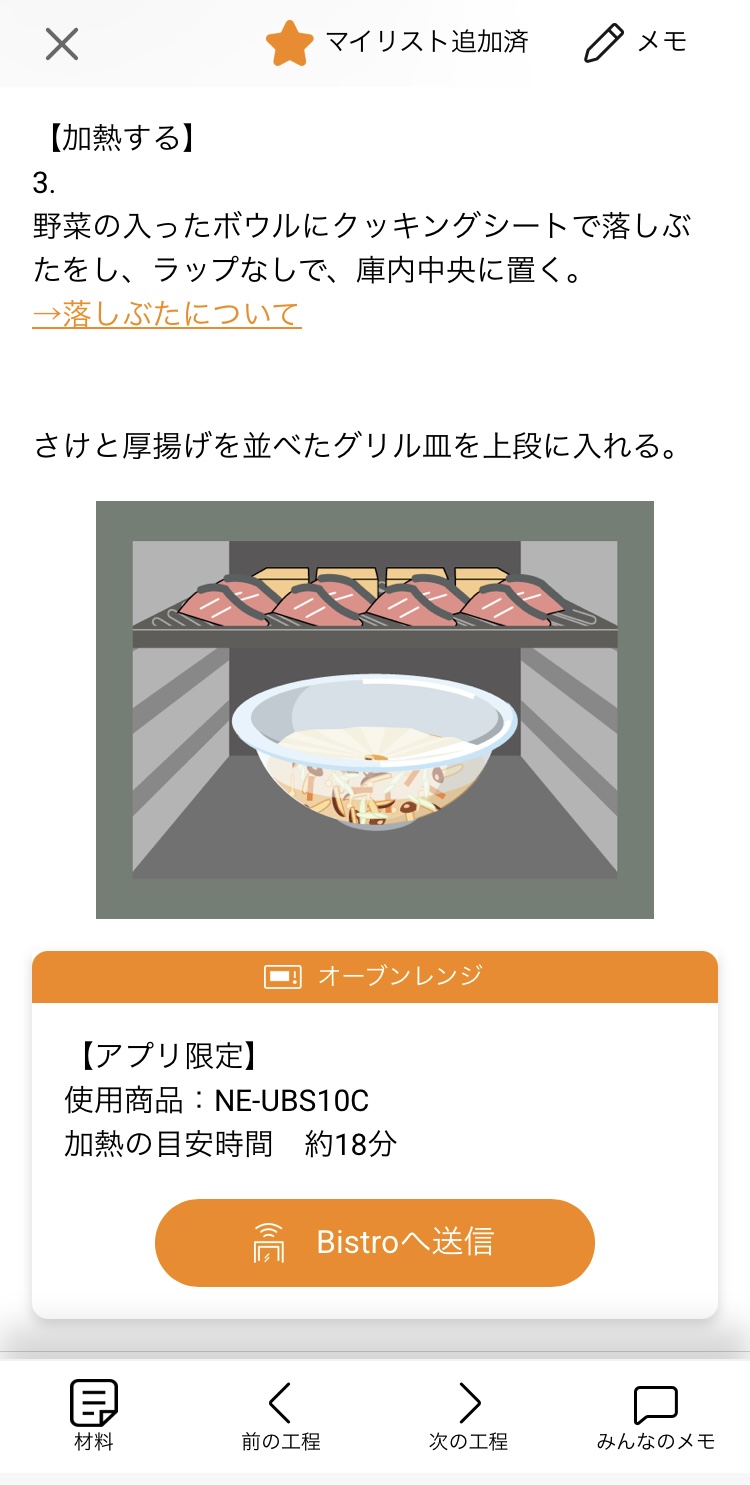 レンジなどスマホと連携できる調理家電を使う際、とっても役立つアプリ『キッチンポケット』でレシピを検索しました🔍