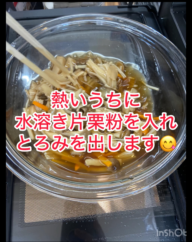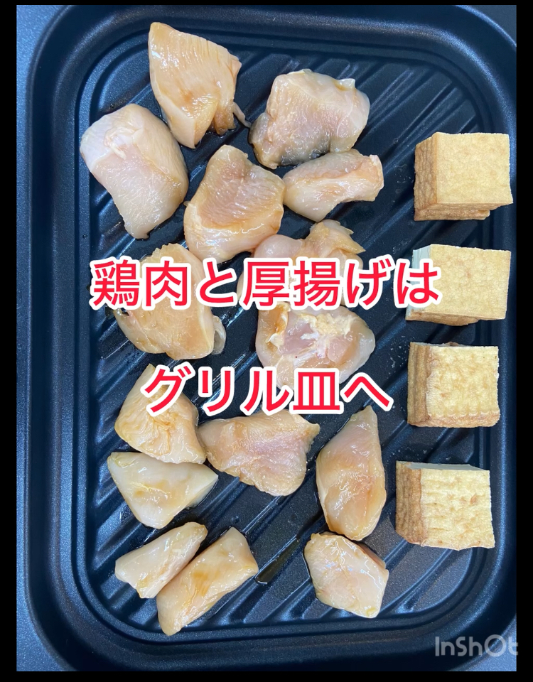 グリル皿でお肉と厚揚げを焼きながら、餡かけの餡を耐熱ボウルで作ります✨