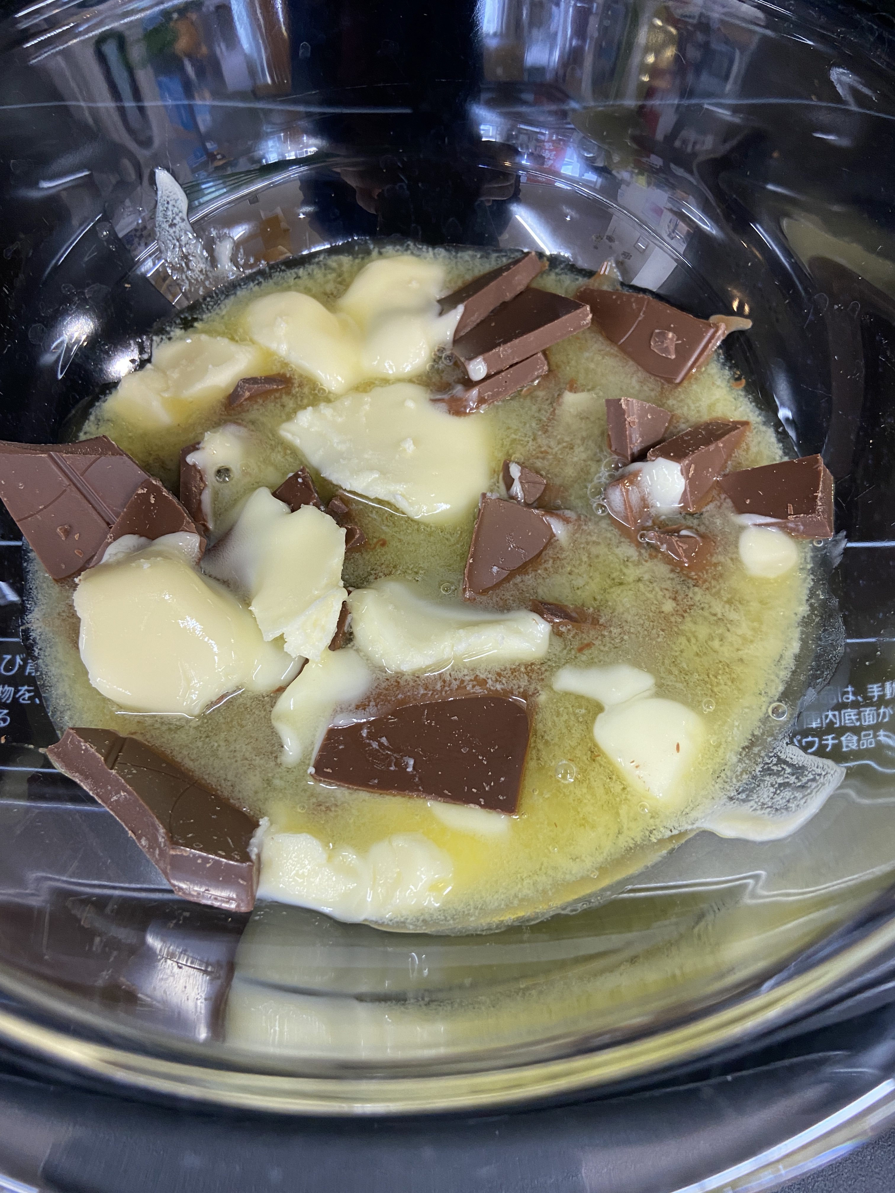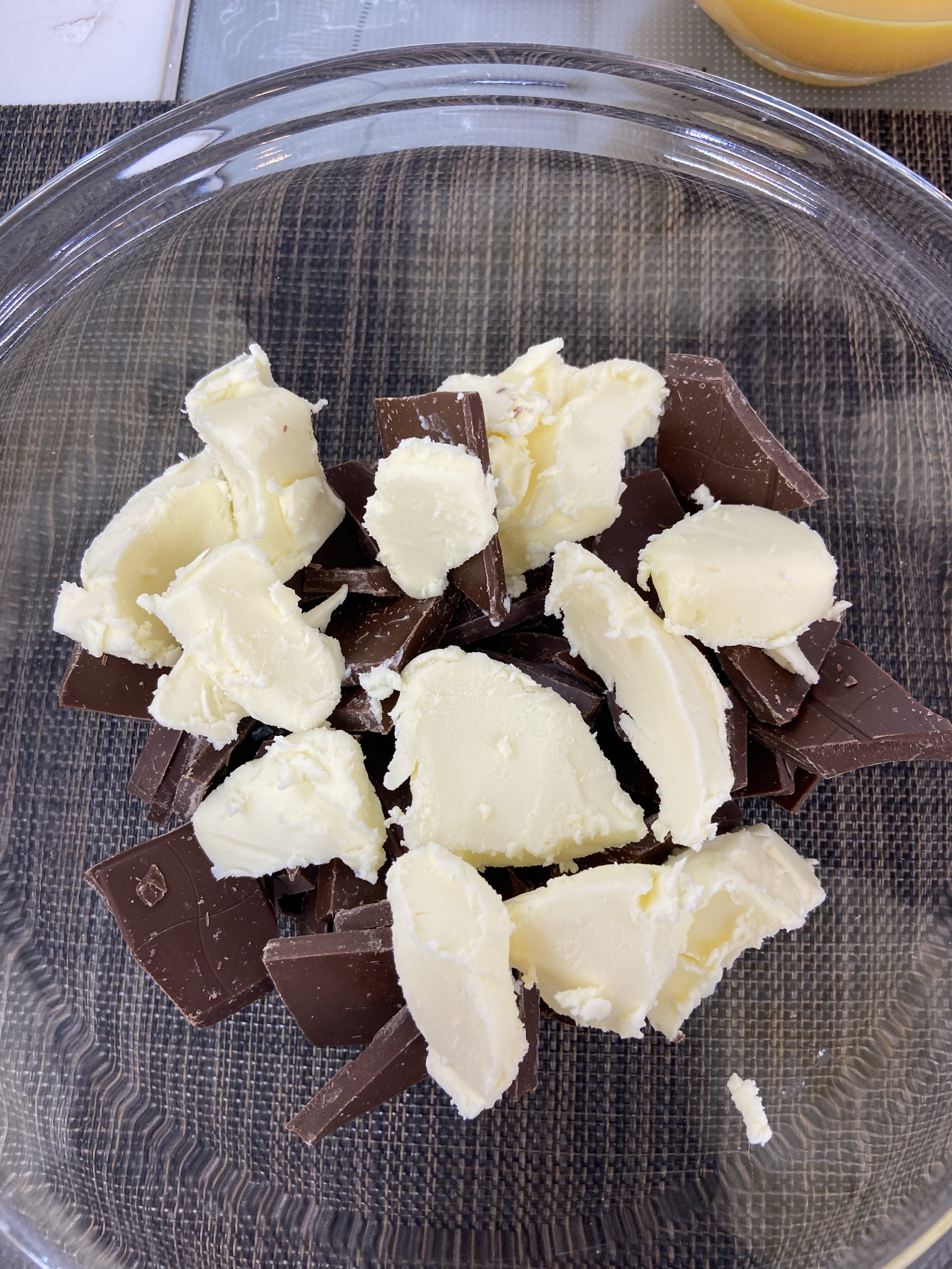 必ずチョコレートの上にバターを乗せて溶かすこと‼️