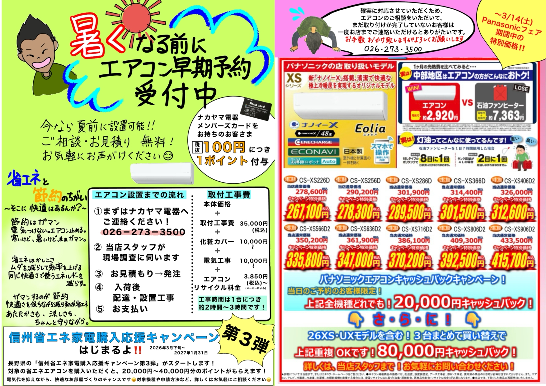 3月27日からは第3弾の『信州省エネ家電等購入応援キャンペーン』も始まりますので、お早めにご相談ください☺️