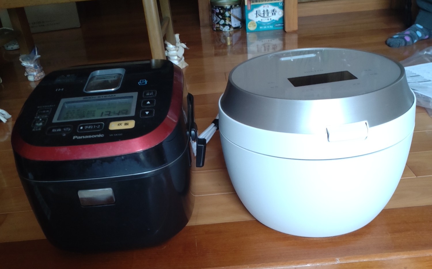 IH炊飯器を交換させていただきました。左が今までのもの。右がパナソニックWおどり炊き。