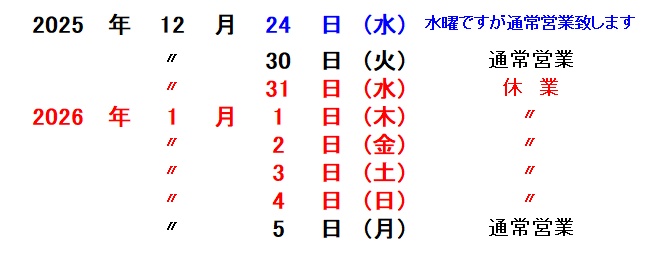 年始は 1月5日(月)より通常営業時間にて営業致します。