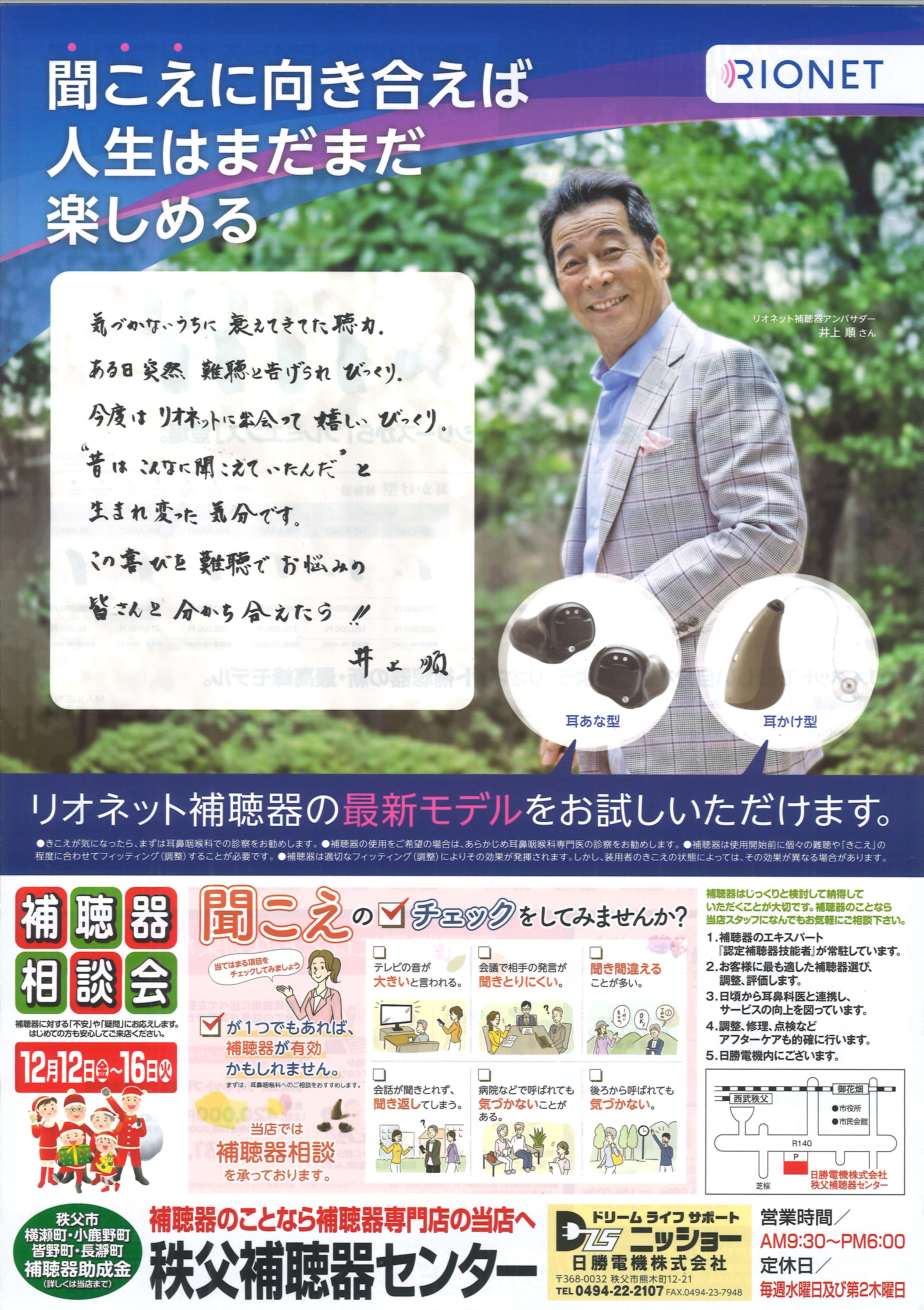 本日12月12日金曜日から16日火曜日まで、日勝電機店内にて補聴器相談会を開催します。