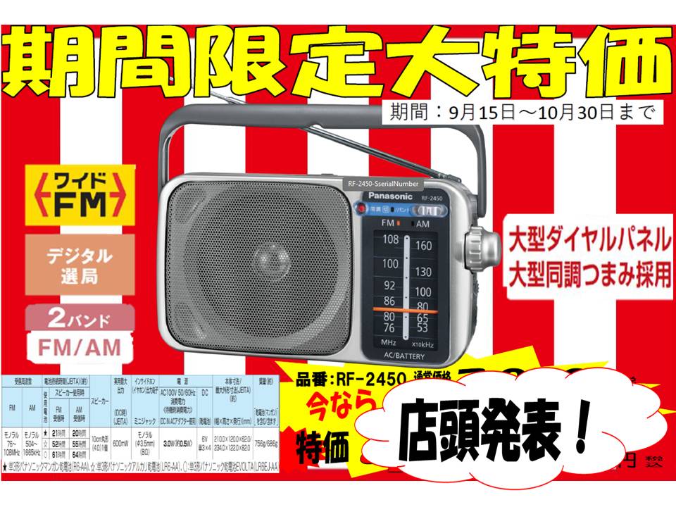 使いやすくて聴きやすいラジオも大変お安くなっております。