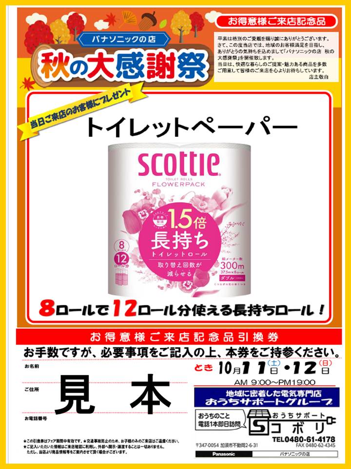 来店記念品はトイレットペーパーを準備しました。
