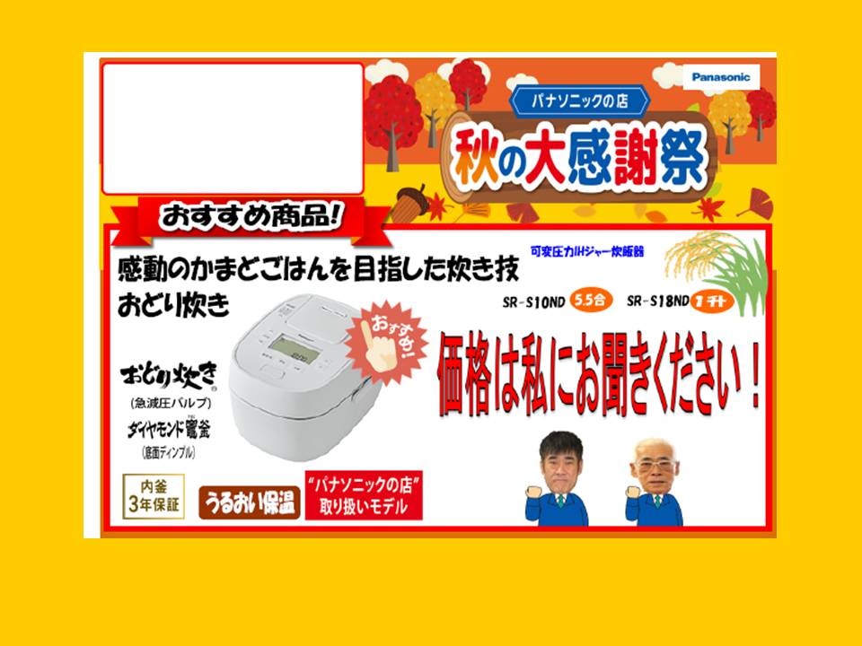 今回1番のオススメ商品は炊飯器です!
