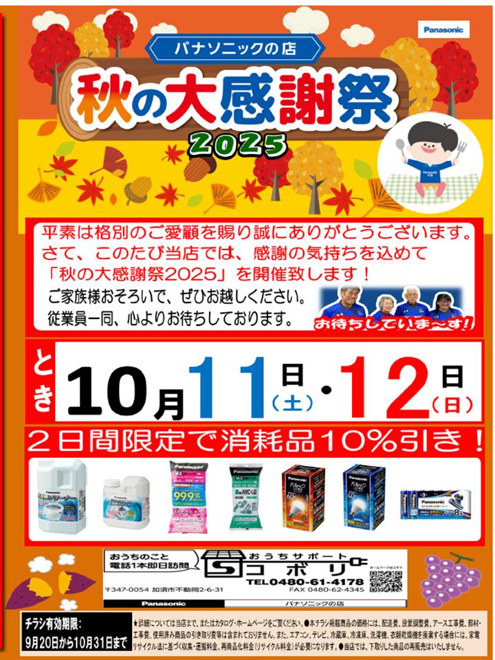 さて、今回は10月11日(土)・12日(日)の2日間、開催する【秋の大感謝祭2025】を紹介します。