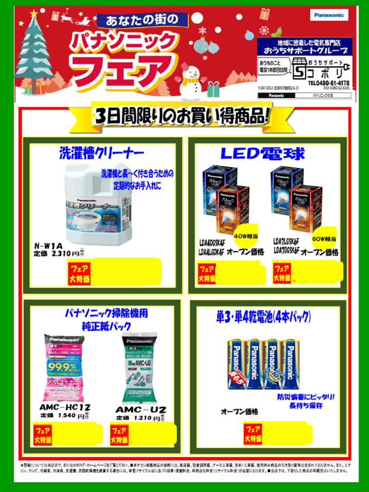 年末のお掃除にもピッタリの洗濯槽クリーナーなどを3日間限りの大特価でご提供いたします。