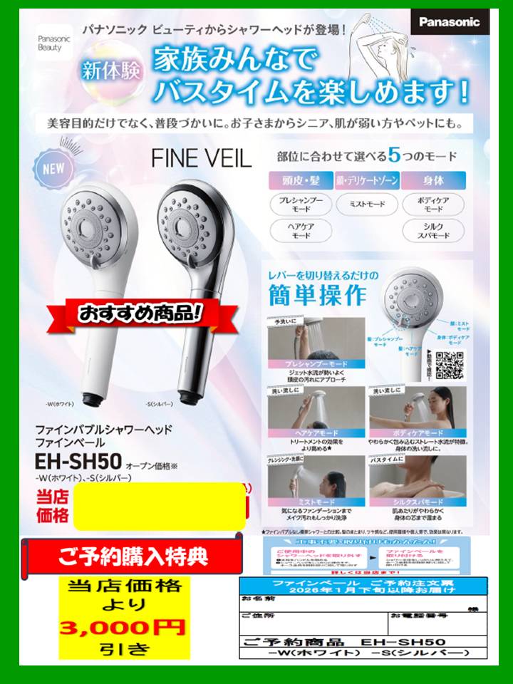 パナソニックから発売されたシャワーヘッドもご予約承っております。