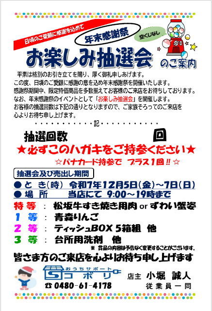~日頃の感謝を込めて~と題しガチャガチャを使った抽選会も同時開催します。