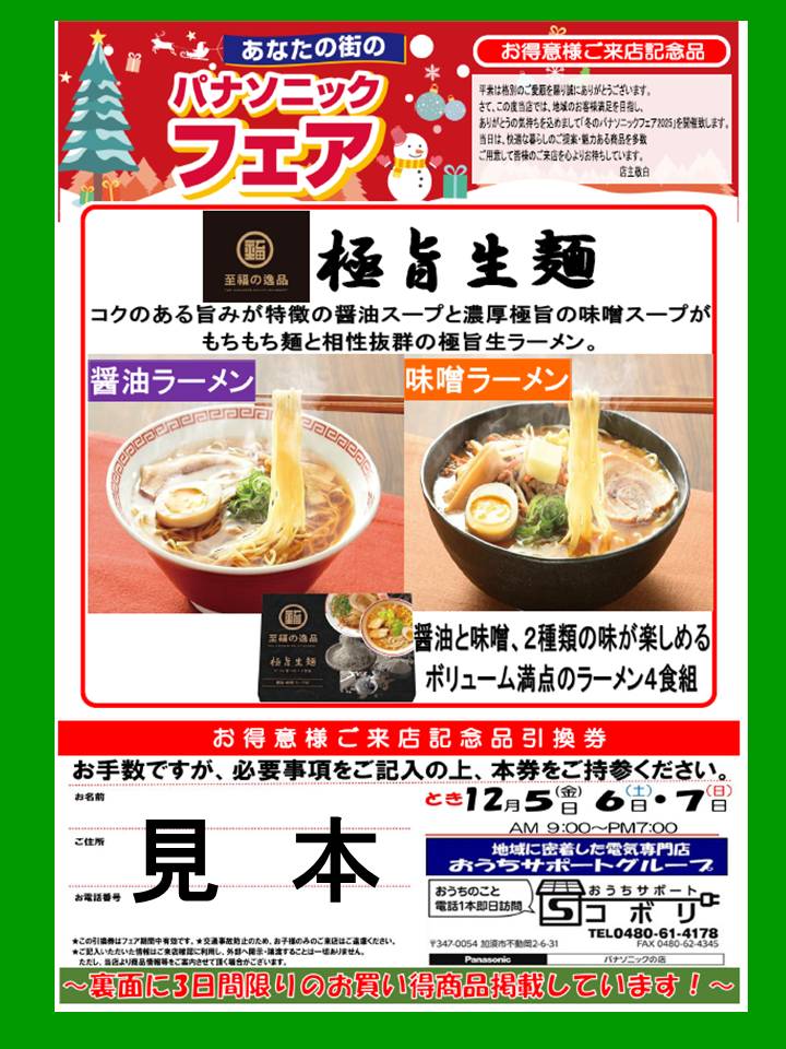 ご来店記念品は2種類の味が楽しめるラーメンを準備しました。