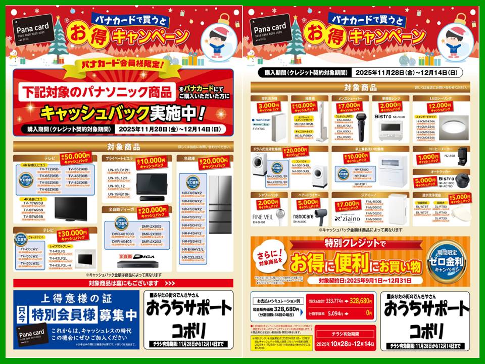 また、パナカードでお買い物すると大変お得なキャッシュバックキャンペーンも開催中!