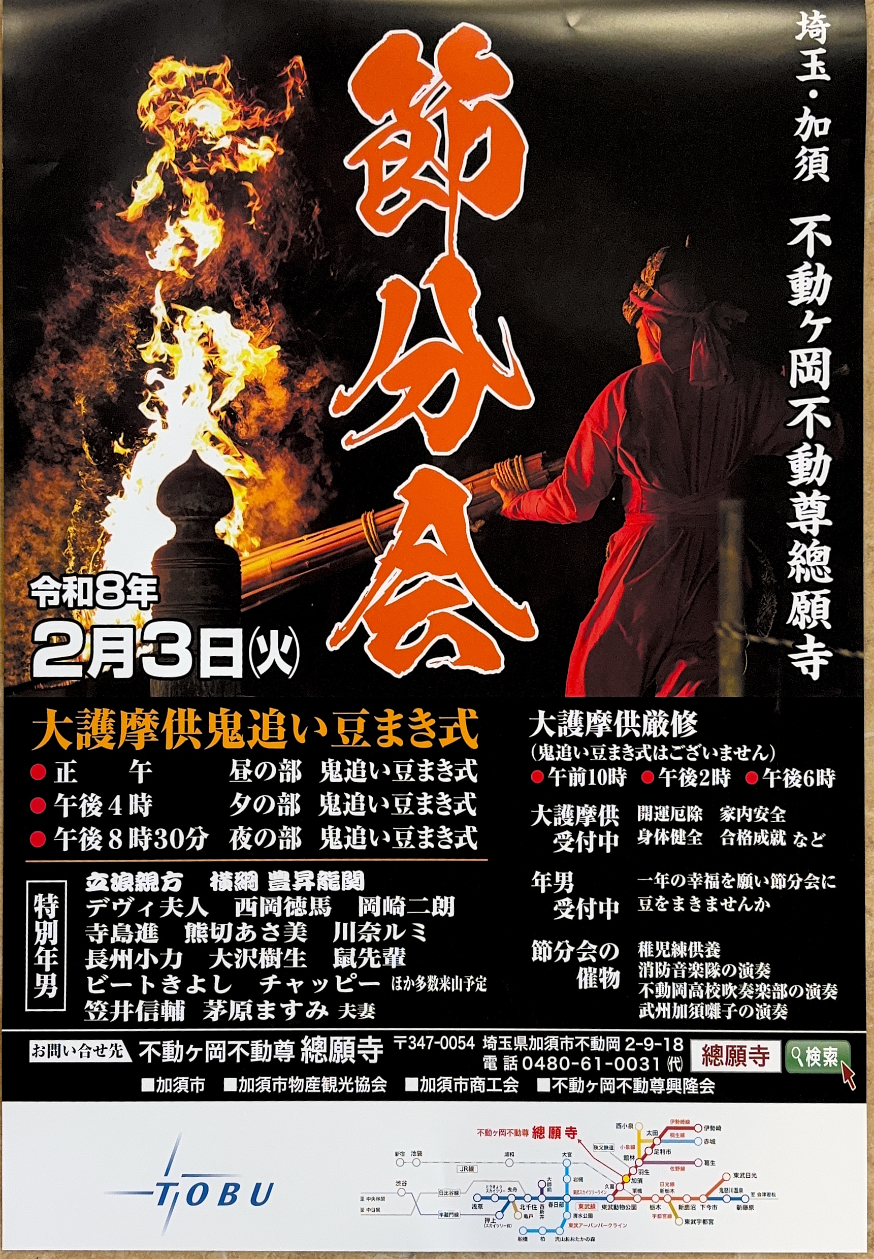 さて、今回は当店近くの総願寺さんで毎年行われる【節分会】を紹介します。
