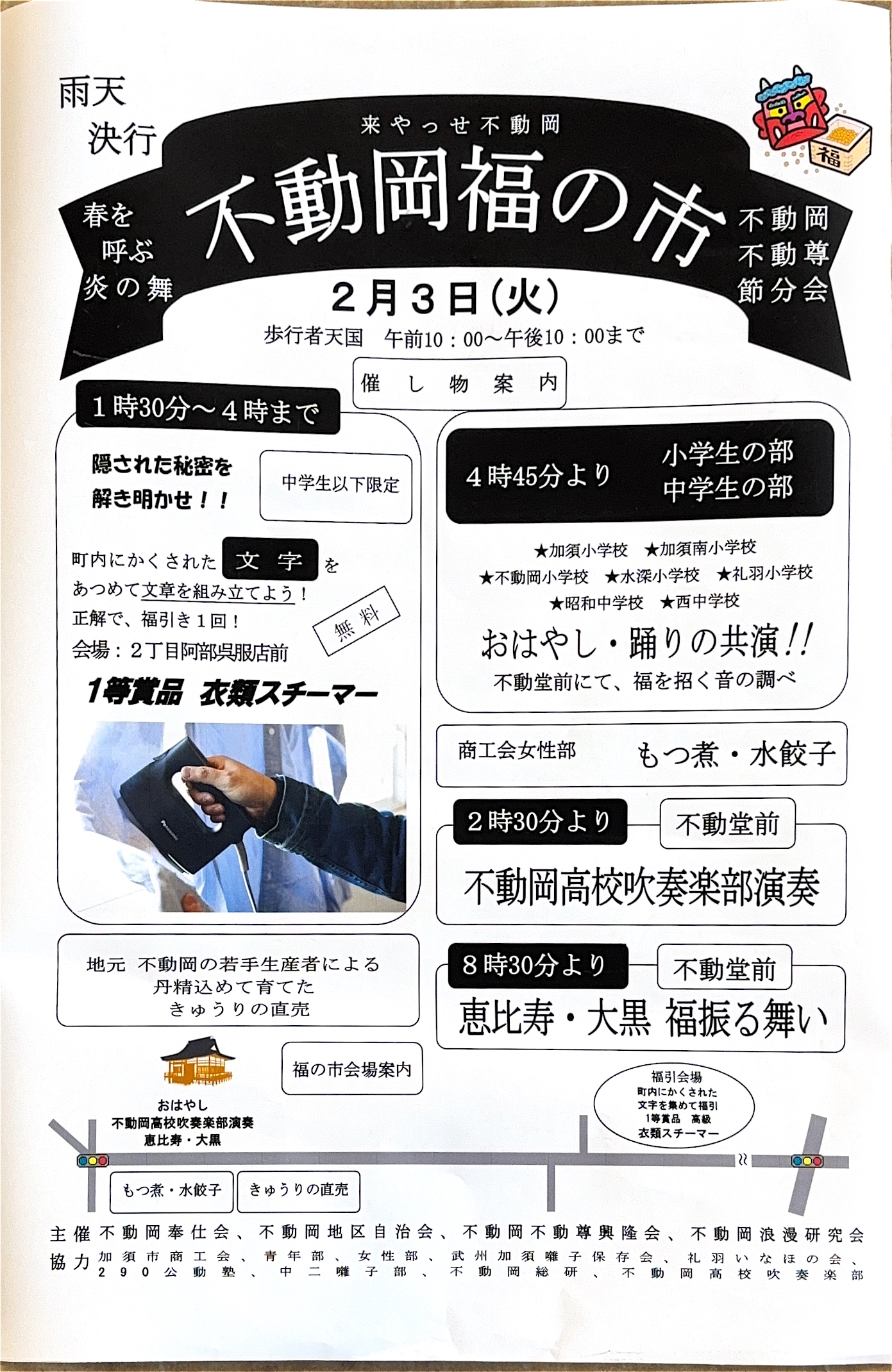 不動岡の町中が歩行者天国になるので、【不動岡福の市】も同時開催します。
