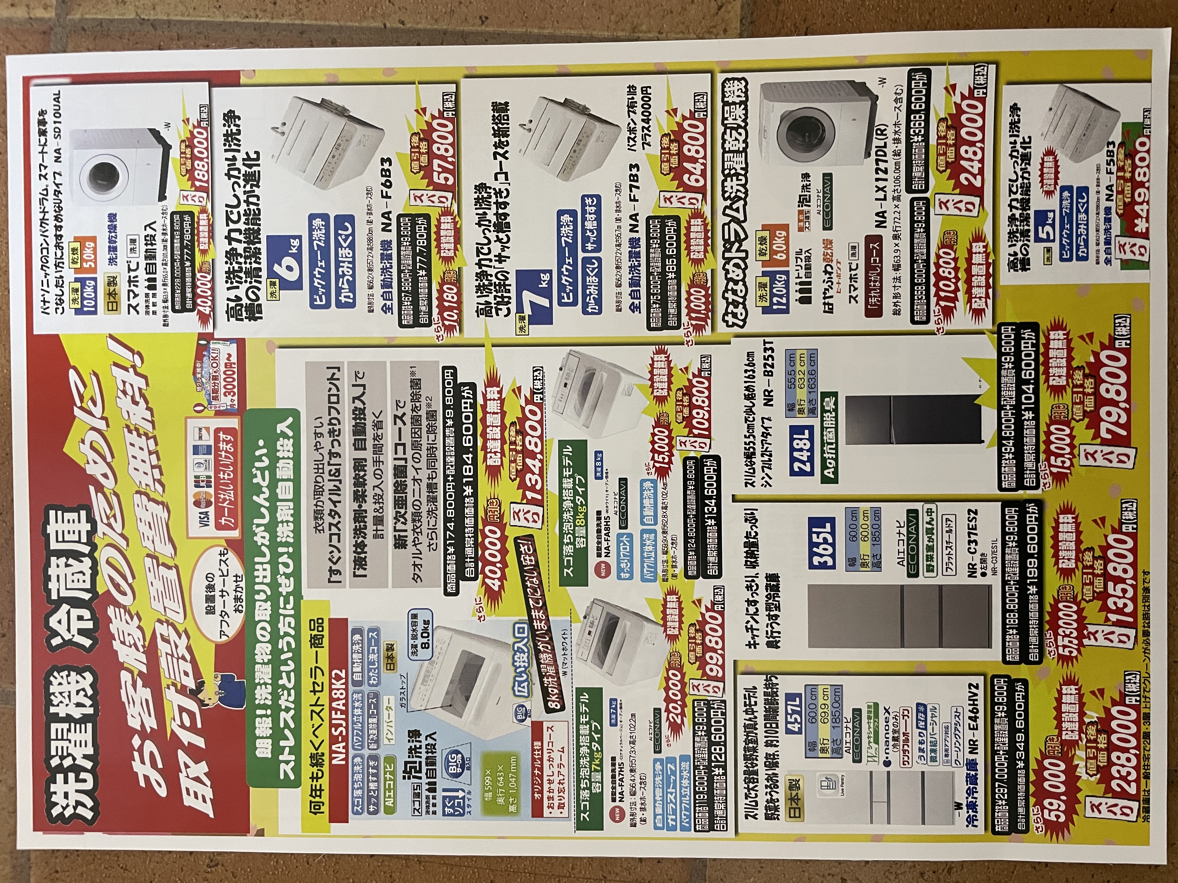 洗濯機・冷蔵庫キャンペーン中!!設置費無料!