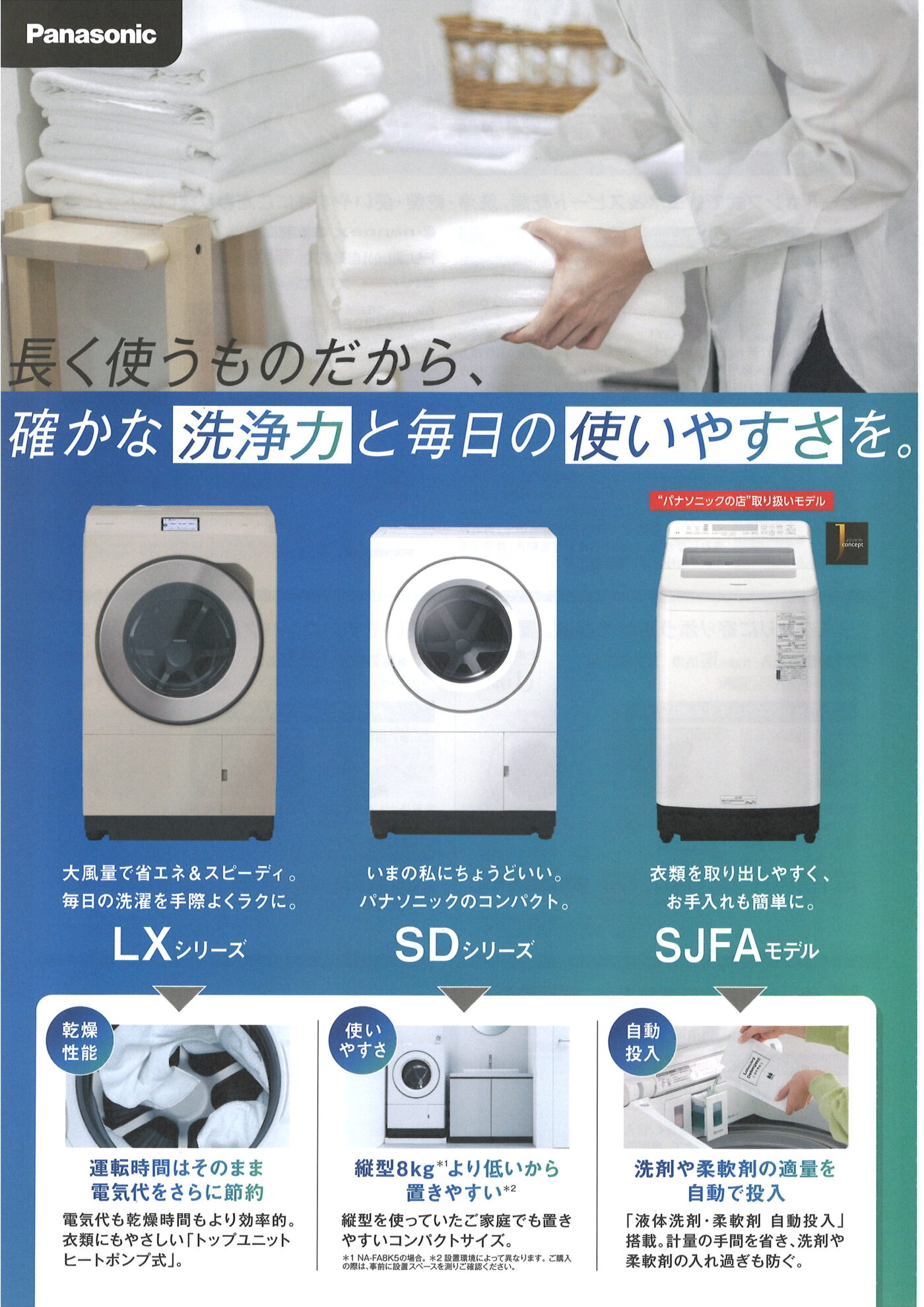 また、LXタイプはヒートポンプ式の「はやふわ乾燥」も特徴で、従来のヒーター式乾燥モデルと比べると電気代・水道代は約1/2に抑えられます!