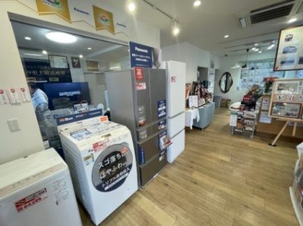 冷蔵庫、洗濯機、テレビ、炊飯器などディスプレイが完了し、お客様のご来場を待っているところです。