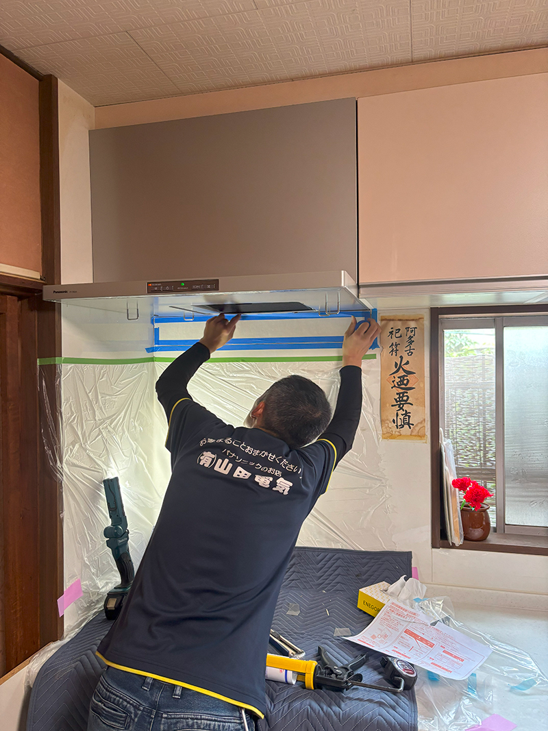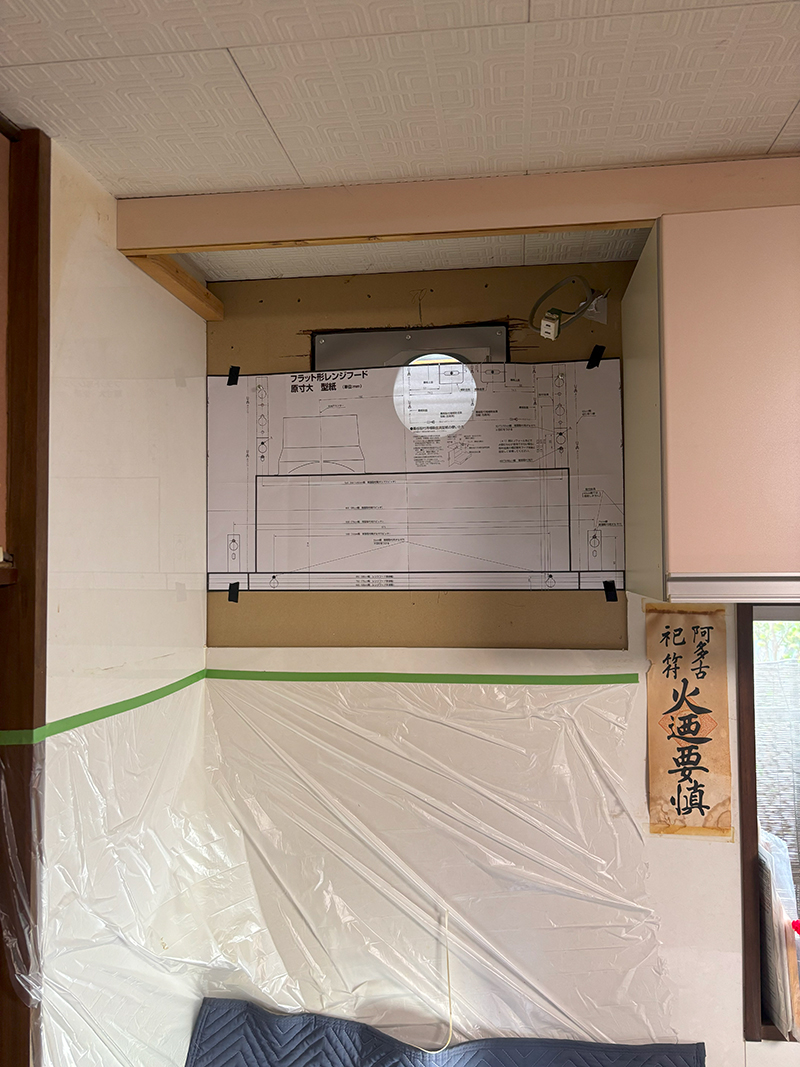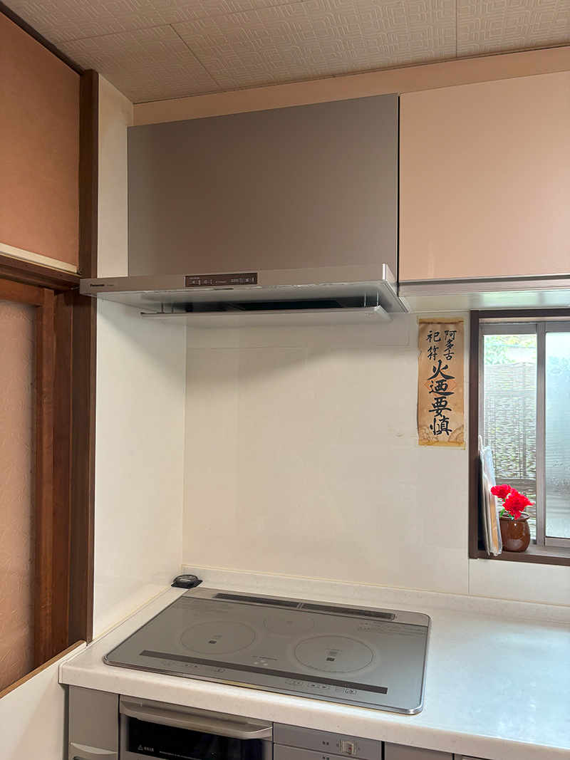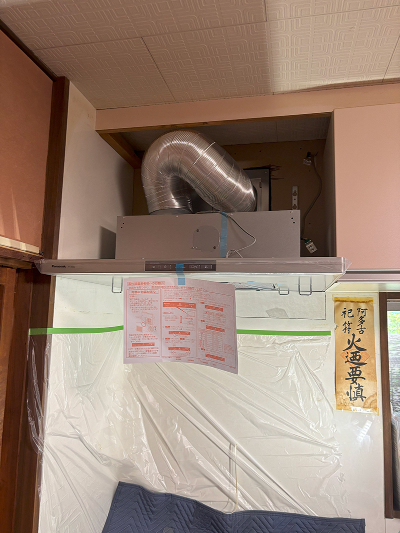 こうすることでレンジフードの排気をダクトで外に排出することが出来ます。